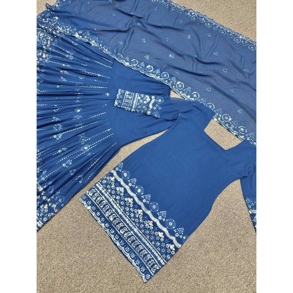 Fancy Top with Embroidery Sequins Work Sharara and Dupatta for Weddings