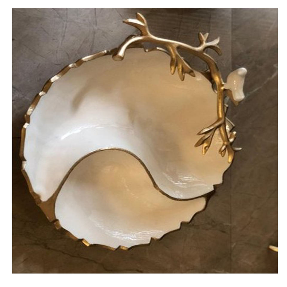 Fancy and Sexy White and Gold Enamel Compartment Bowls with Gold Branch Handle Bird for Nuts and Fruits and Snacks Free