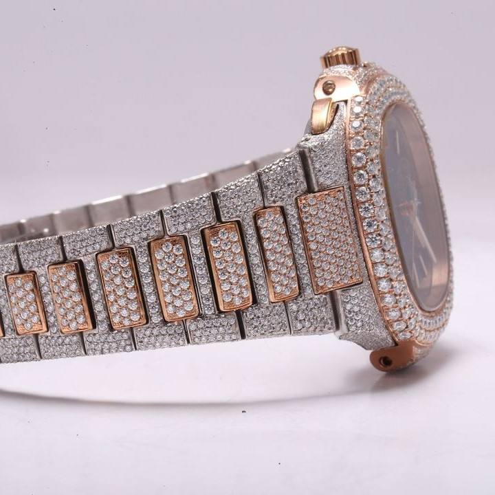 Men's Unique Analog Wrist Watch Stainless Steel Titanium White Gold Fancy Jewelry Iced Hip Hop Style Moissanite Diamonds Glass