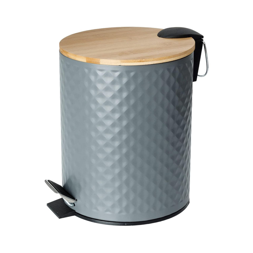 Fantastic Design Grey Metal Pedal Dustbin With Natural Bamboo Wooden Lid Waste Bin For Kitchen And Bathroom In Cheapest Price