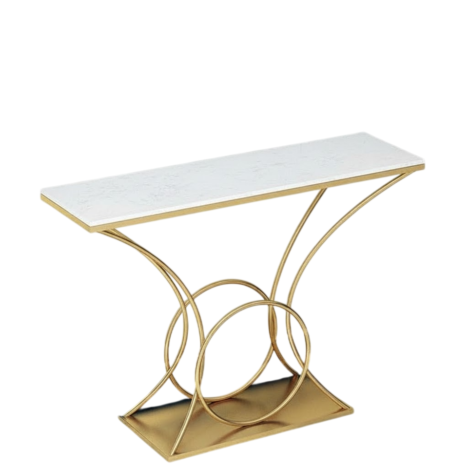 Fantastic Gold Finish Metal Frame Console Table With White Marble Top Rectangular Hallway Accent Table For Home And Hotel Decor
