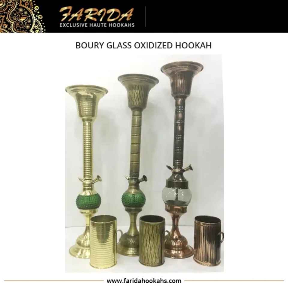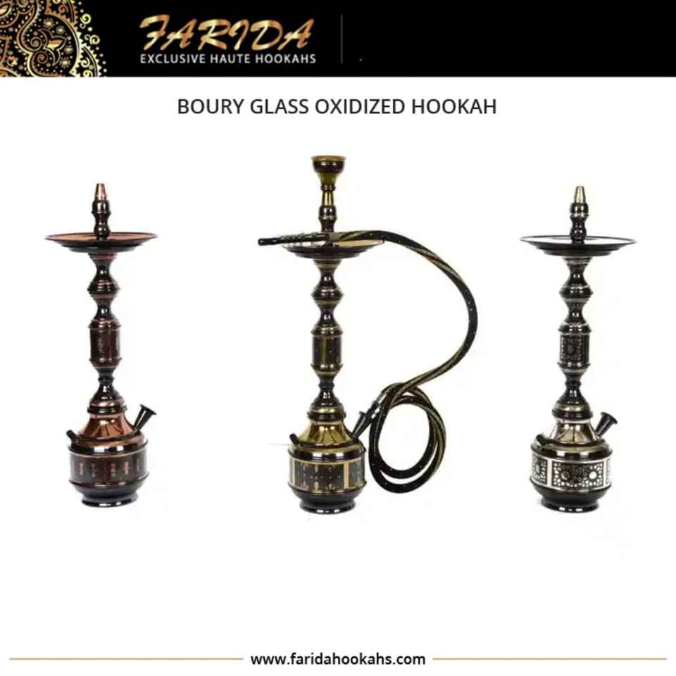 Farida Luxury Arabian Brass Boury Oxidized Hookah with Lacquer Technics