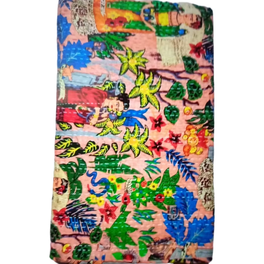 Farida Print Bed Cover 100% Cotton Queen Size Kantha Quilt Vintage Home Decor Bedding Hand Block Printed Duvet Blanket comfort