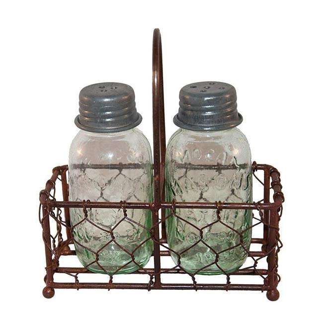 Farmhouse Chicken Wire Salt & Pepper Shakers Holder Set, Cute Salt and Pepper Set with Caddy for Restaurants, Farmhouse Decor