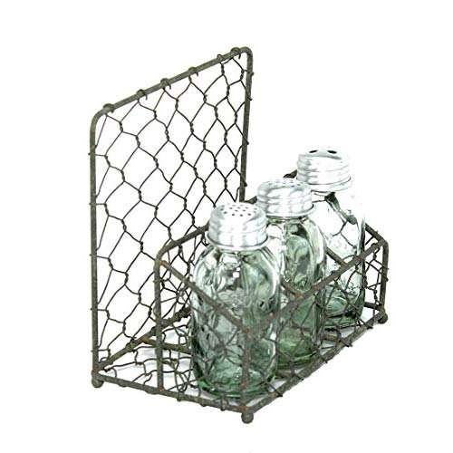 Farmhouse Chicken Wire Salt & Pepper Shakers Holder Set, Cute Salt and Pepper Set with Caddy for Restaurants, Farmhouse Decor