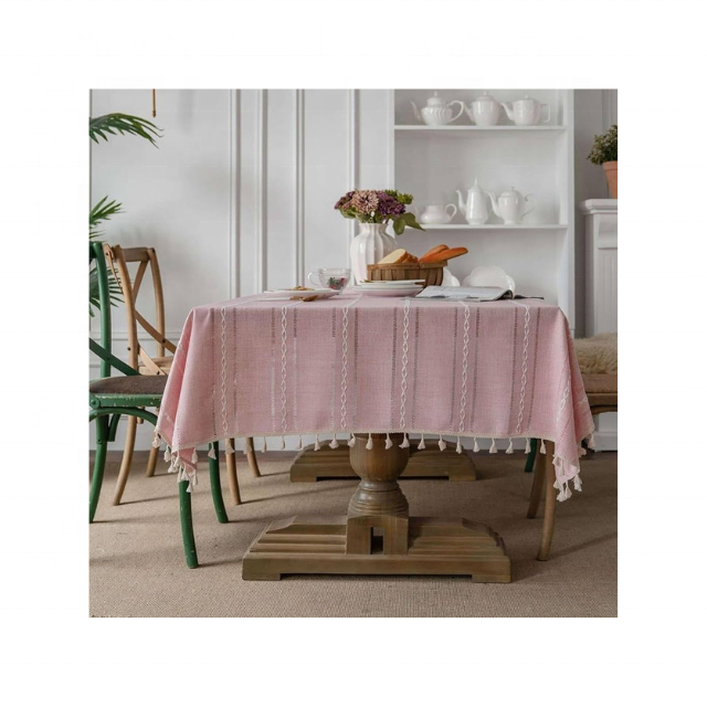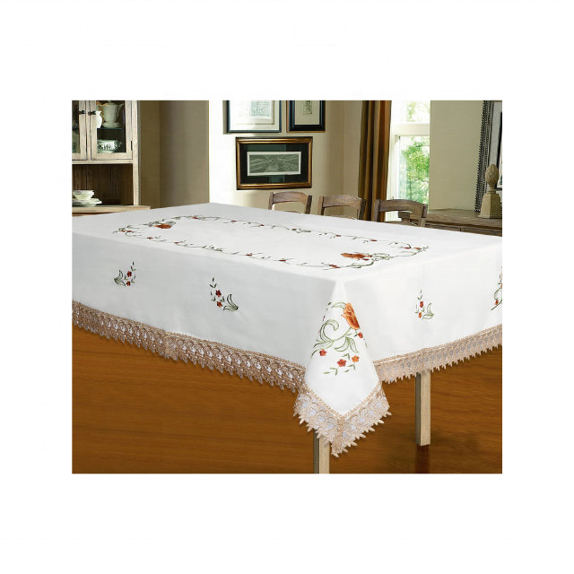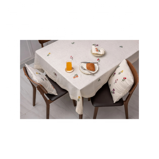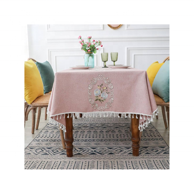 Farmhouse Cotton Simple Floral Embroidered Outdoor Dining Durable Sustainable Gathering 60x90 Inches Machine Washable Tablecloth