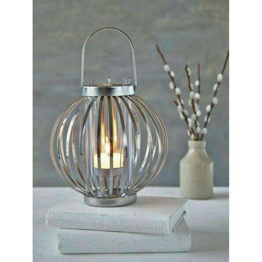 Farmhouse Country Style Metal Lantern Decorative Tealight Candle Holder Home Garden Decoration Crafts Silver Lantern Candle Jar