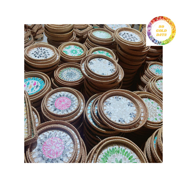 Farmhouse Decor Handwoven Natural Rattan Wicker Storage Basket Tray with Handles Rustic Farmhouse Decorative