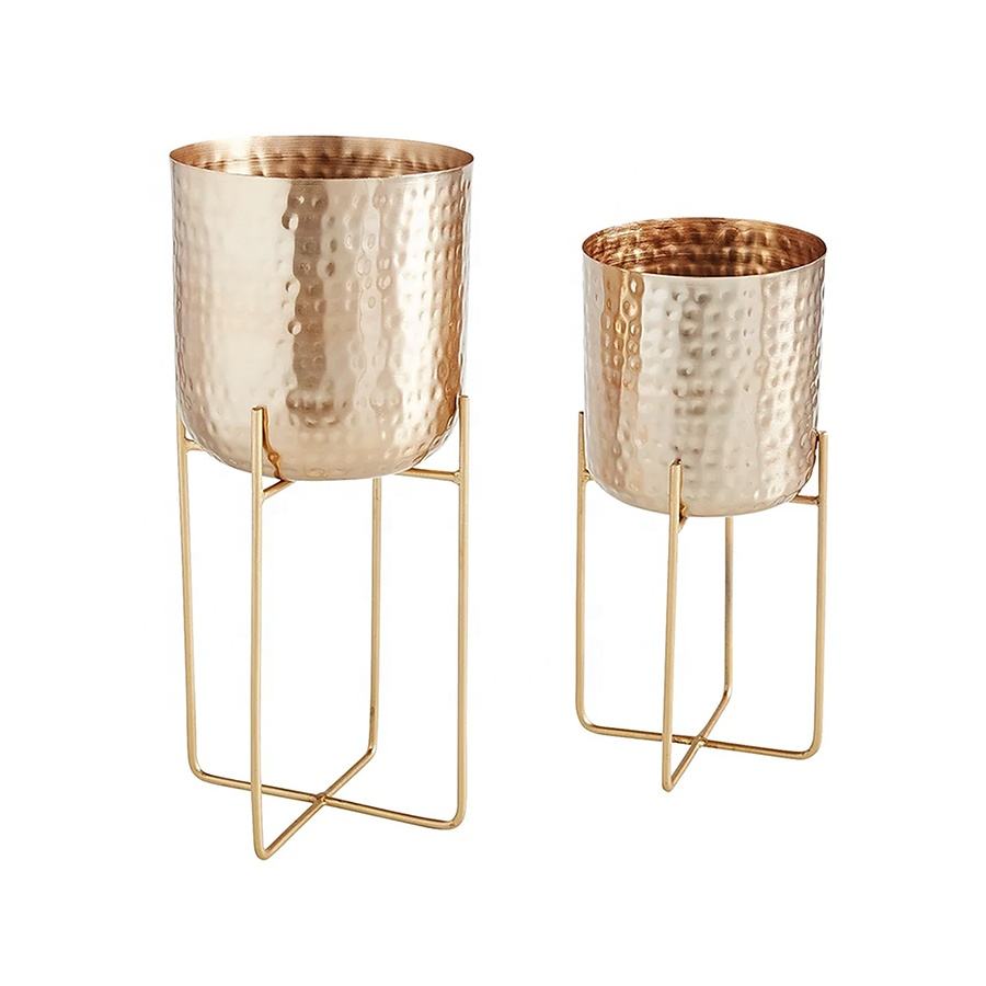 Farmhouse Iron Planter With Stand High Quality Hot Selling Metal Gold Plated Planter With Stand Unique Centrepieces Urn Vase