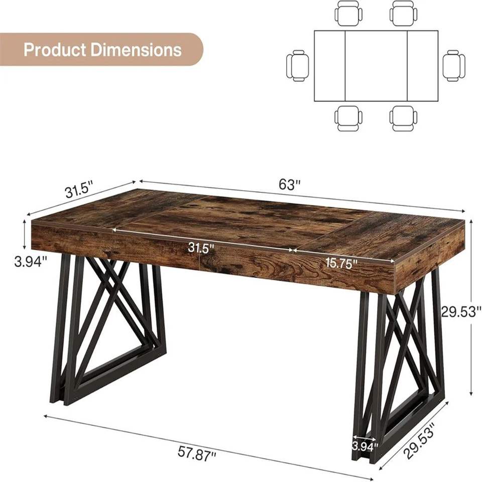 Farmhouse Kitchen Dining Table Dual-Use Office/Writing Desk with Rustic Style