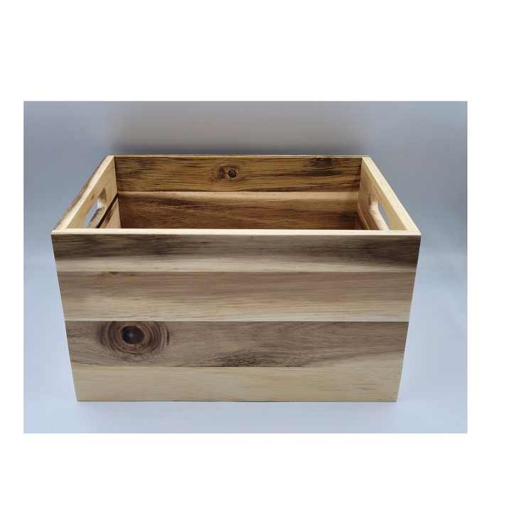 Farmhouse Natural Solid Pine Wood Crate Rope Handles Wine Cake Fruit Storage New Year Gifts-Wood Crafts Wooden Boxes Wall Signs