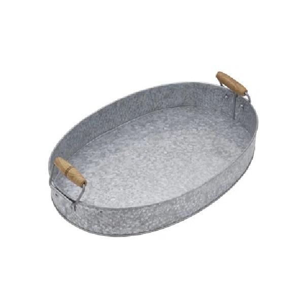 Farmhouse Oval Shape Iron Galvanized Serving Tray Tabletop Food & Drinks Tray with Wood Handles for Home & Hotels Usage
