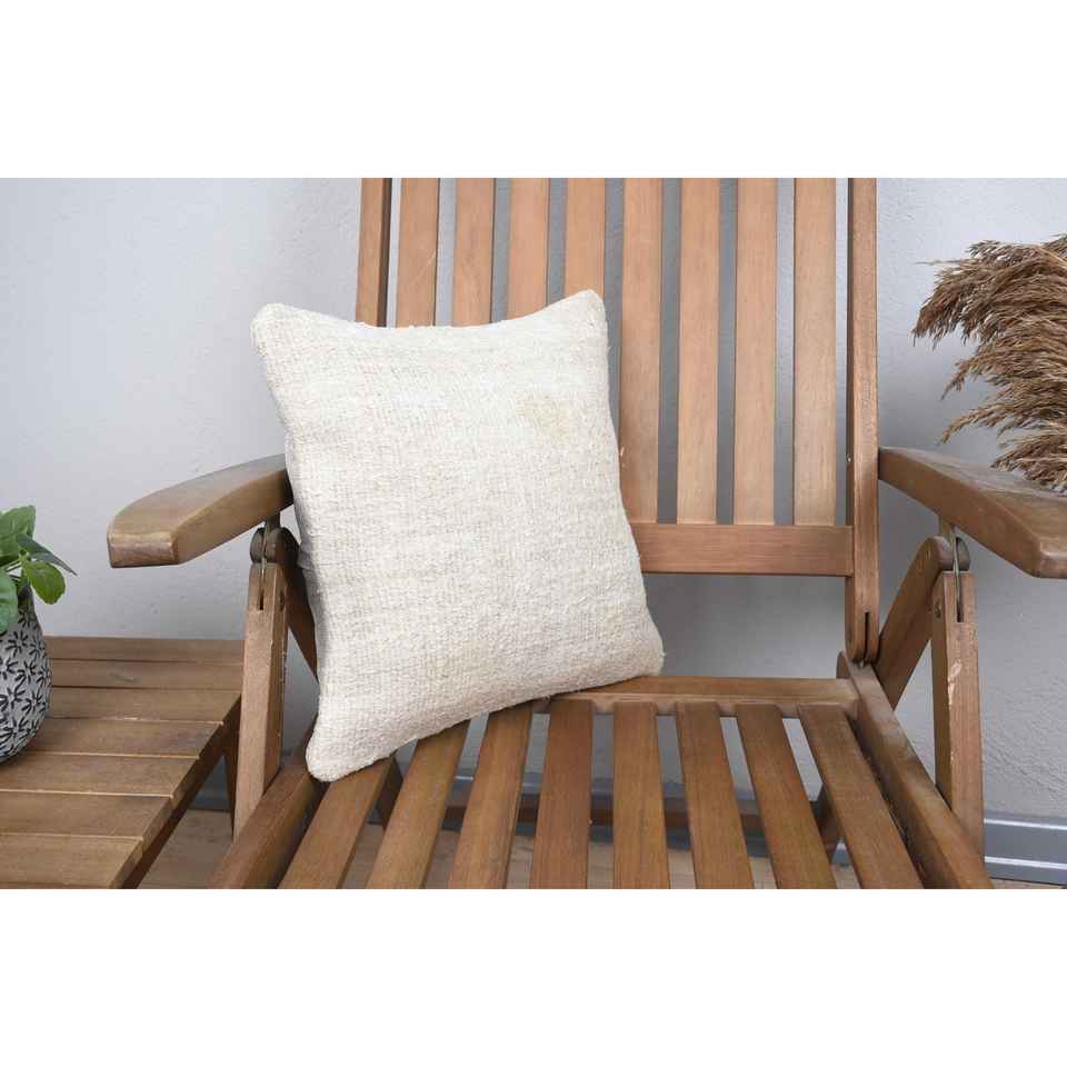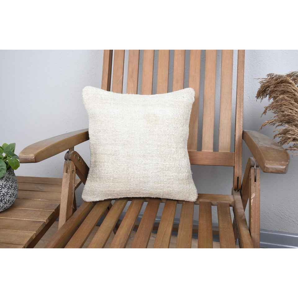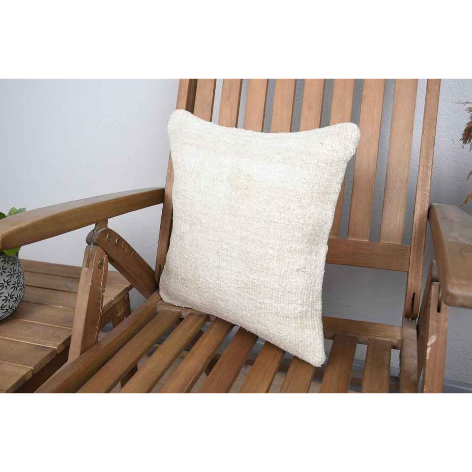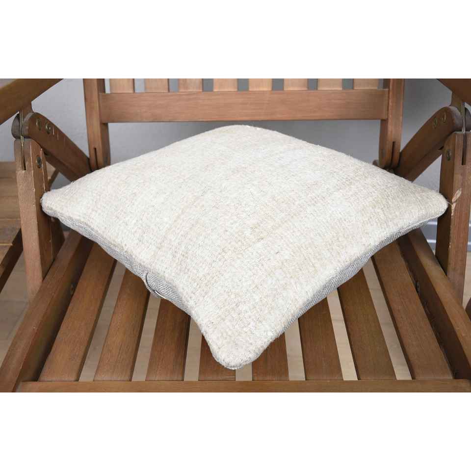 Farmhouse Rustic Design 14x14 Inch Beige Wool Rug Woven with Vintage Pattern