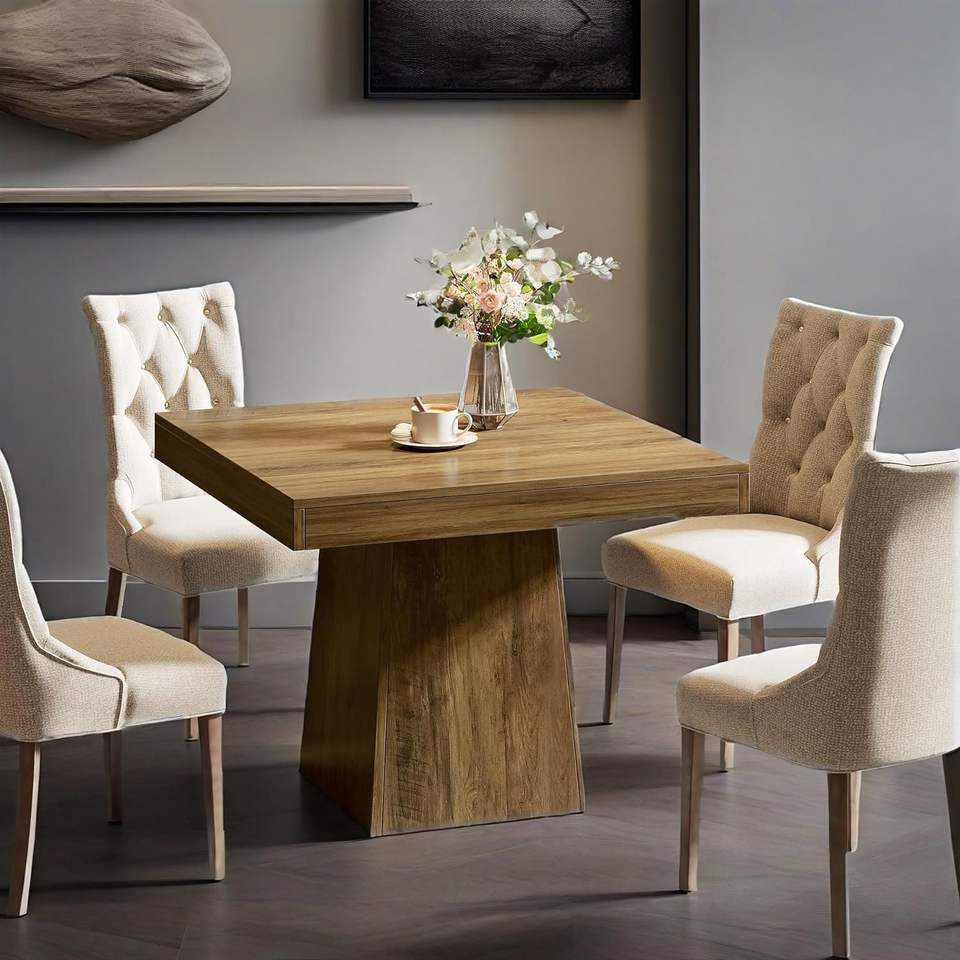 Farmhouse Style 31.5 Inch Small Kitchen Table Square Dining Table for 4 with Sturdy Pedestal Base