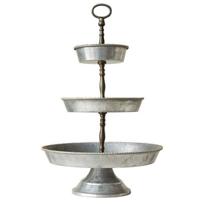 Farmhouse Style Galvanized Metal 3 Tiered Round Serving Tray Stand With Handle For Kitchen Home Decor In Affordable Price