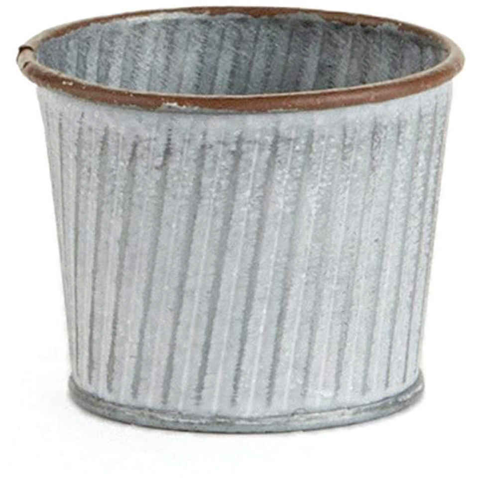 Farmhouse Style Ribbed Silver Galvanized Metal Bucket Planter Small Round Corrugated Garden Pots with Rusty Rim for Succulent