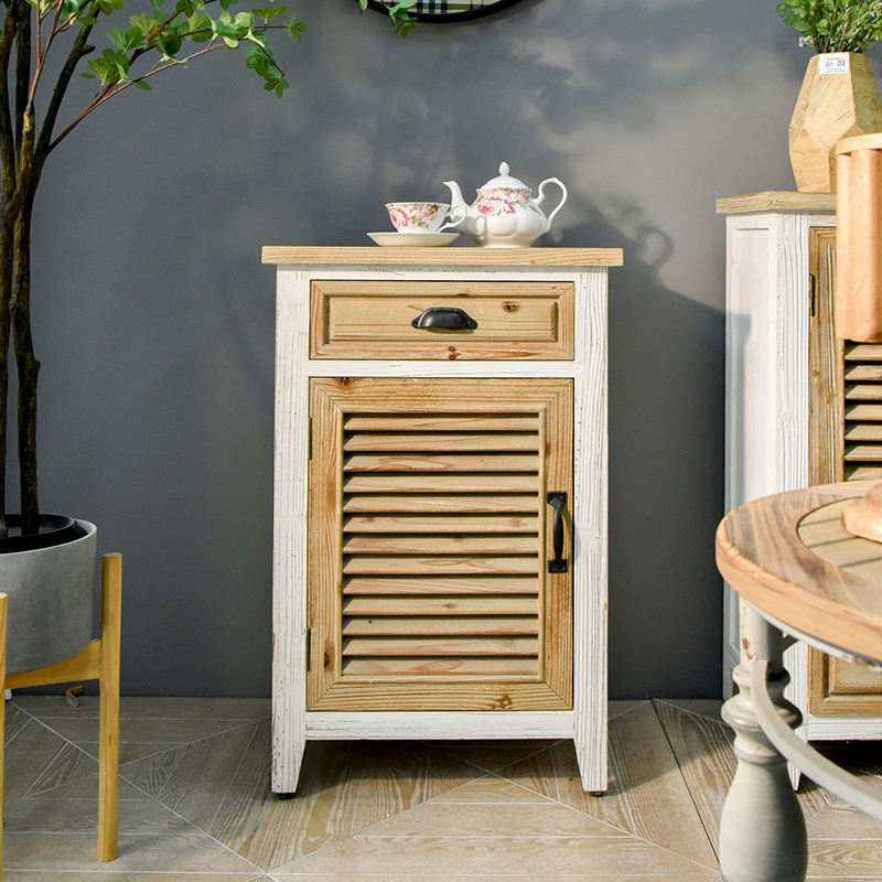 Farmhouse Style Solid Wood Corner Cabinet with Storage Drawer Handmade Durable Retro Nightstand for Bedroom Living Room Hotel