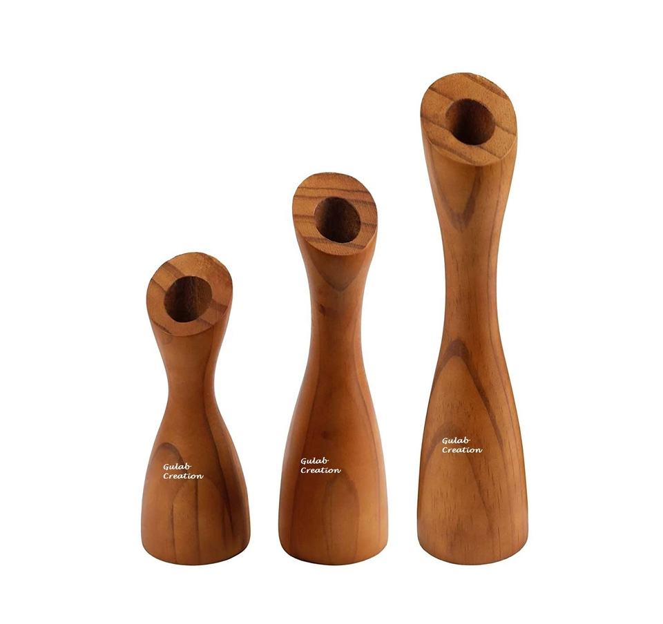Farmhouse Wooden Candlestick Holder Set for Table Centerpiece