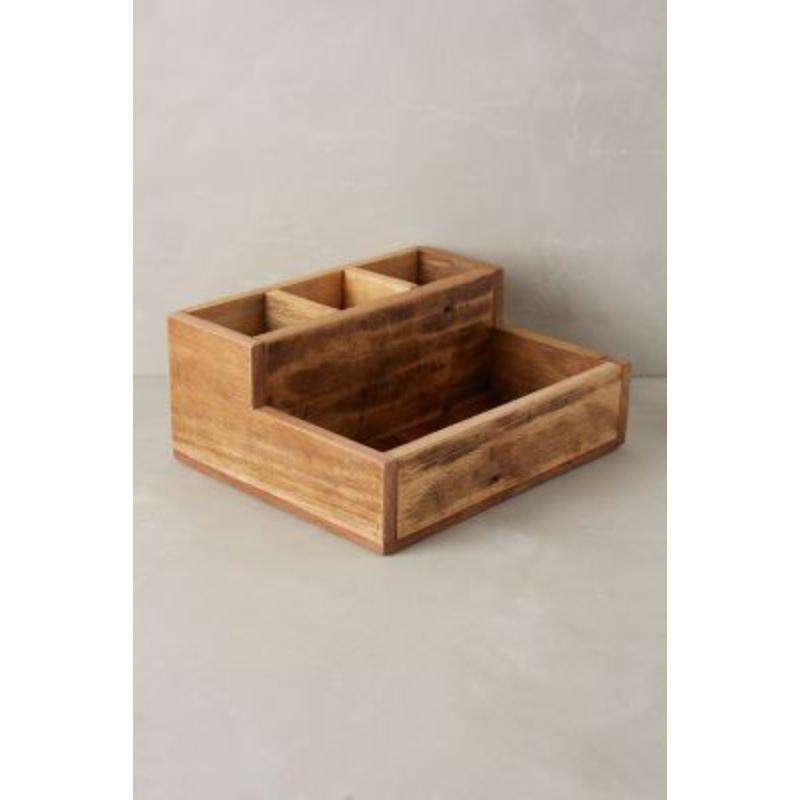 Farmhouse-inspired Wooden Caddy Suitable for Organizing Bathroom Essentials Like Toothbrushes and Hand Towels