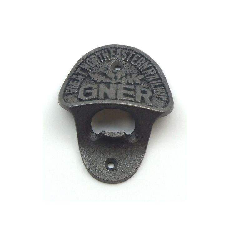 Farmhouse inspired wall mounted metal bottle opener with vintage hardware look for rustic decor and practical use