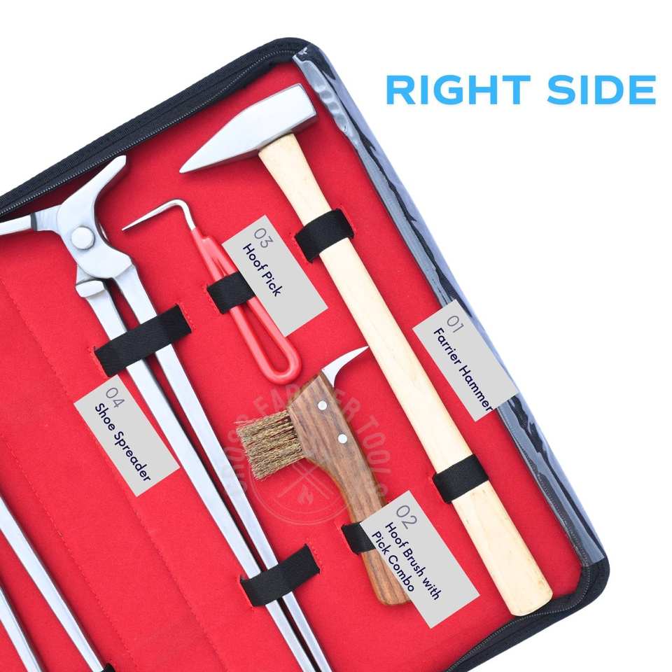 Farrier Tools Kit in Case with Nail Puller Shoe Spreader Driving Hammer Pointed Cleaning Hoof Brush Pickup and Nail Clincher