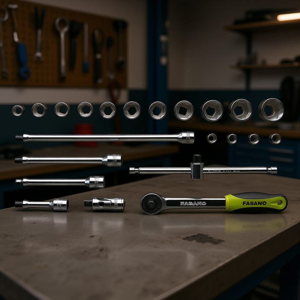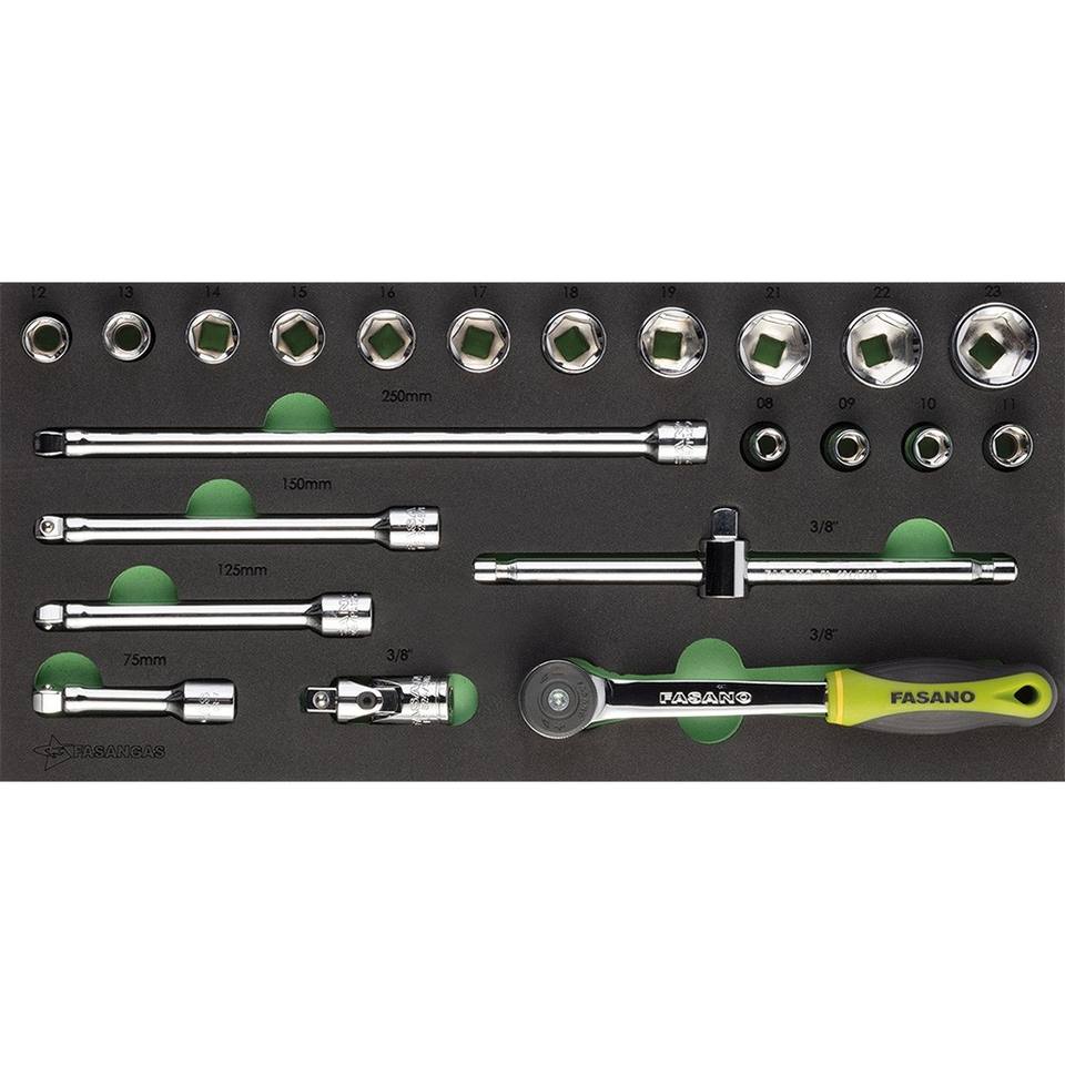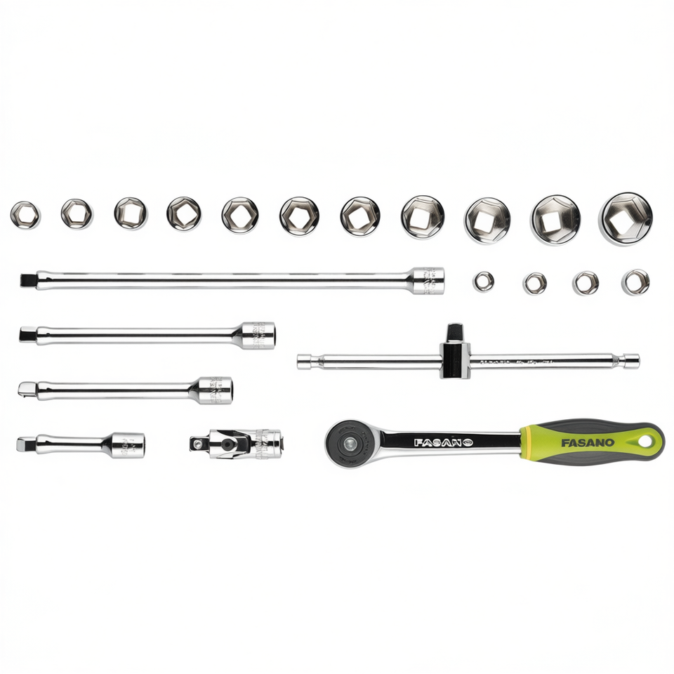 Fasano Socket Set 3/8 Inch 12-23mm With Ratchet And Extensions For Auto Repair