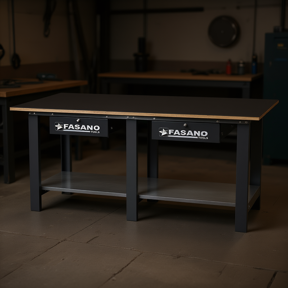 Fasano Tools Workbench 72 In X 30 In Steel Frame With Shelf And Drawers For Workshop Use