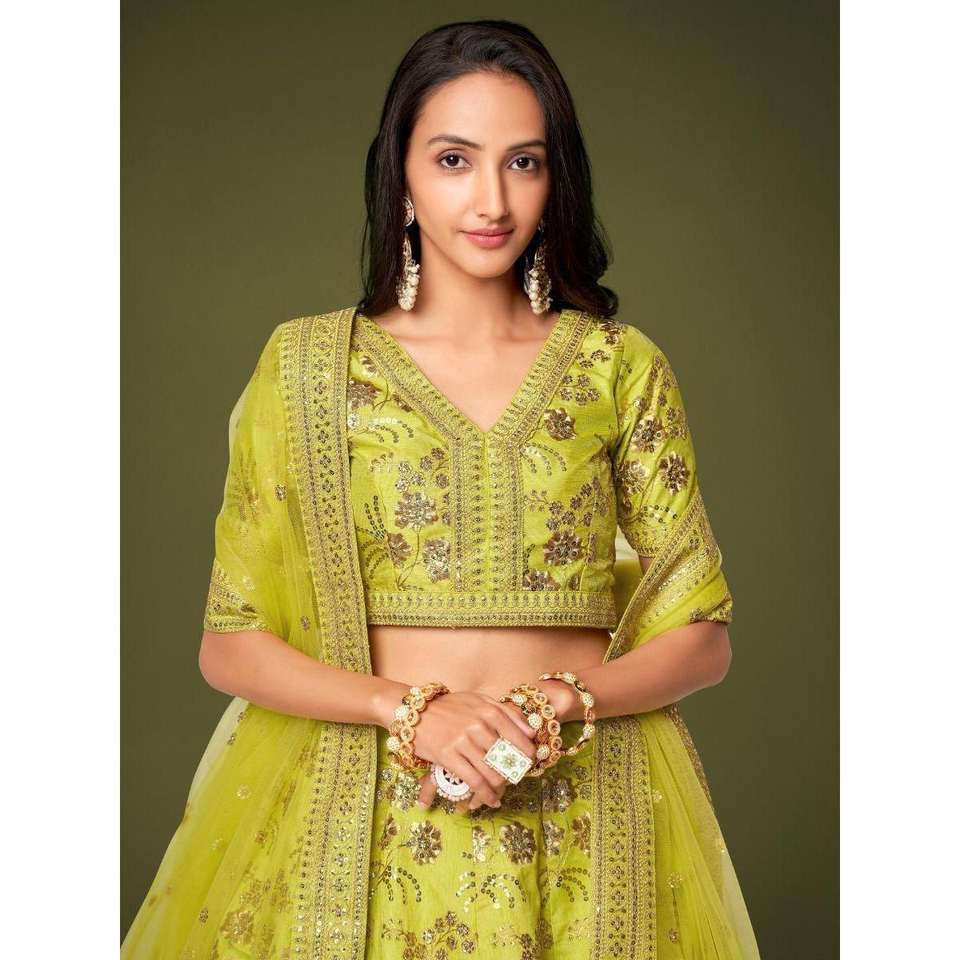 Fascinating Neon Green Sequins Silk Wedding Dress Lehenga Choli Choli