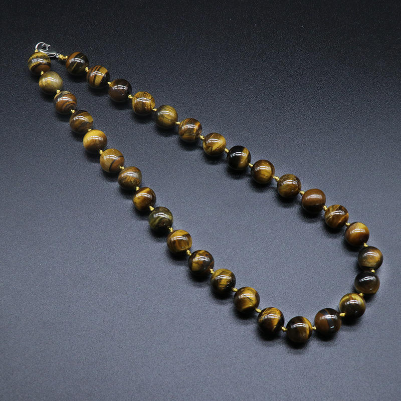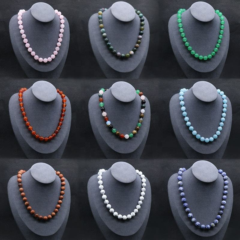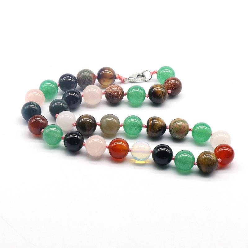 Fashion 12mm Natural Stone Crystal Agate Jade Polished Round Beads Beaded Necklace With Buckle Fashion Necklaces Accessories