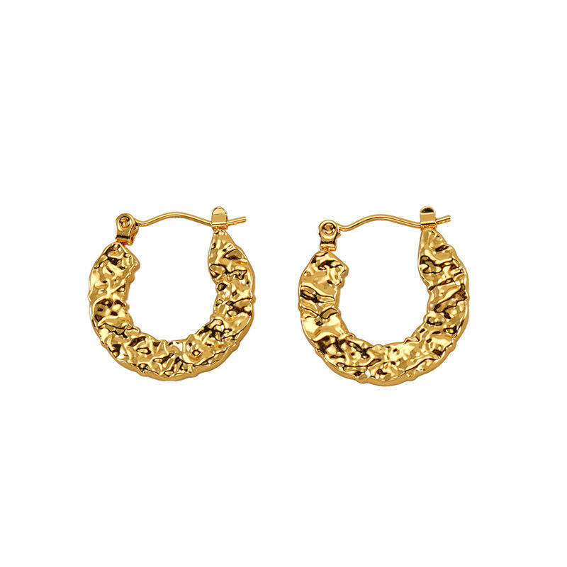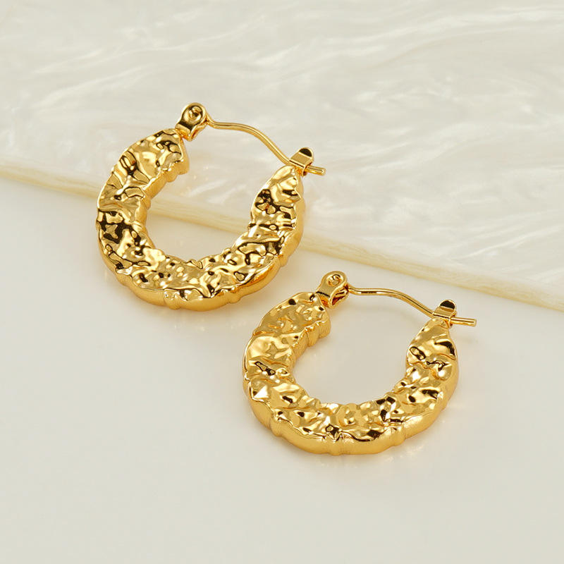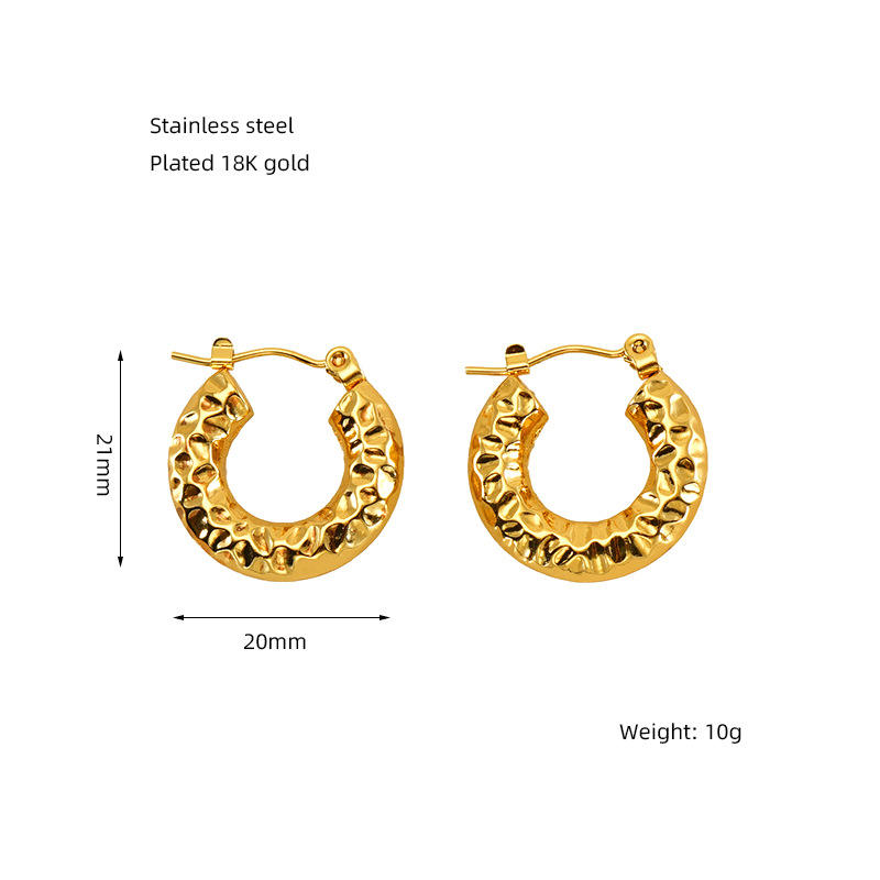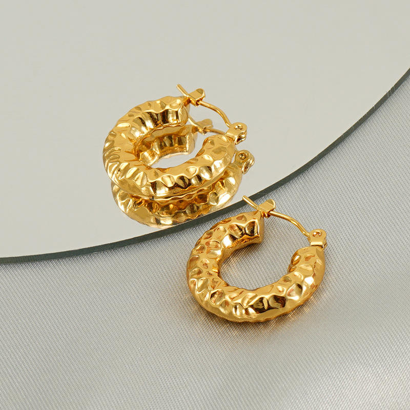 Fashion Trendy 18K PVD Gold Plated Stainless Steel Chunky Hammered Texture Hoop Earrings for Women