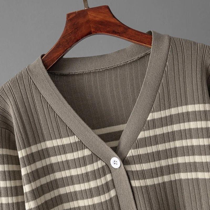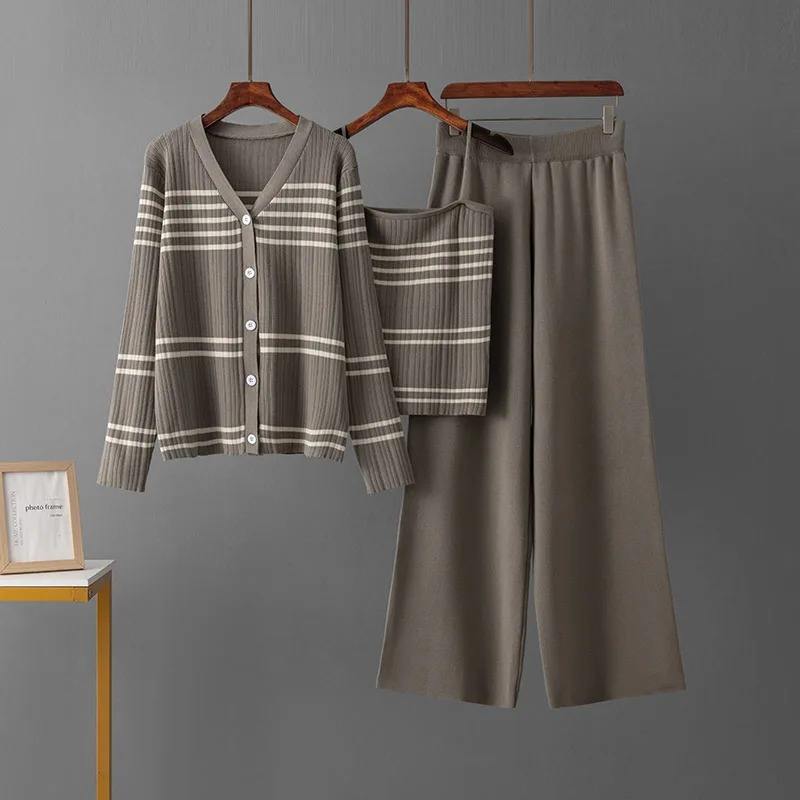 Fashion 3 Piece Knit Striped Set Women Sexy Vest Long Sleeve Sweater Cardigan Elastic Waist Pants Women's Tracksuit Knitted Suit