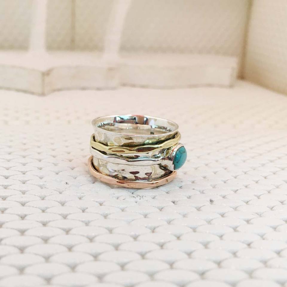 Keyword:Turquoise Gemstone 925 Sterling Silver Spinner Ring