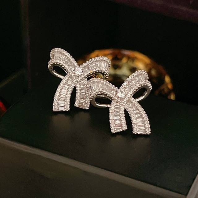 925 Sterling Silver Fine Stud Earrings for Women Luxury Bow Design with Moissanite Diamonds Fashion Iced Out Jewelry
