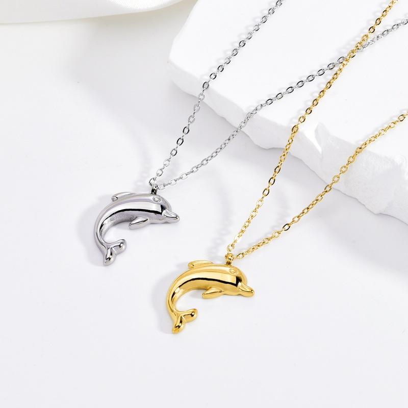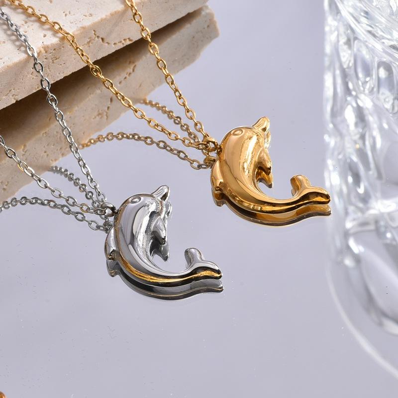 Fashion Anti Tarnish Jewelry 18K PVD Gold Plated Stainless Steel Dolphin Pendant Necklace for Women Girls Gift