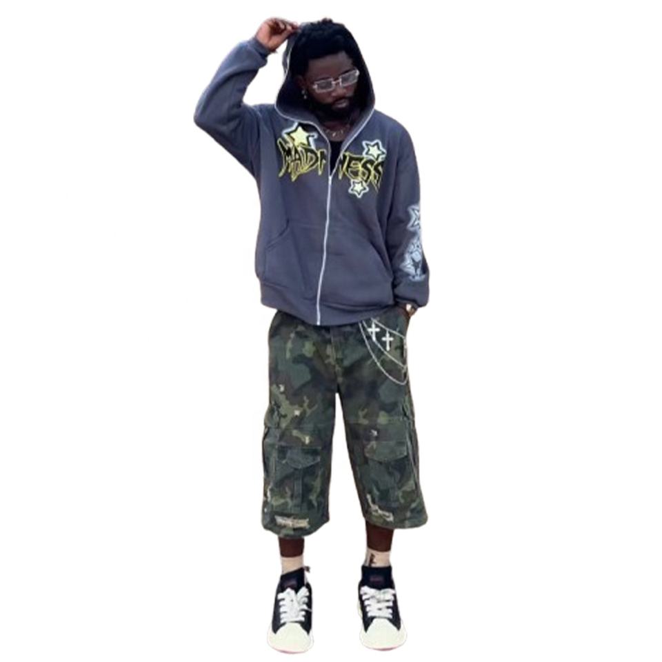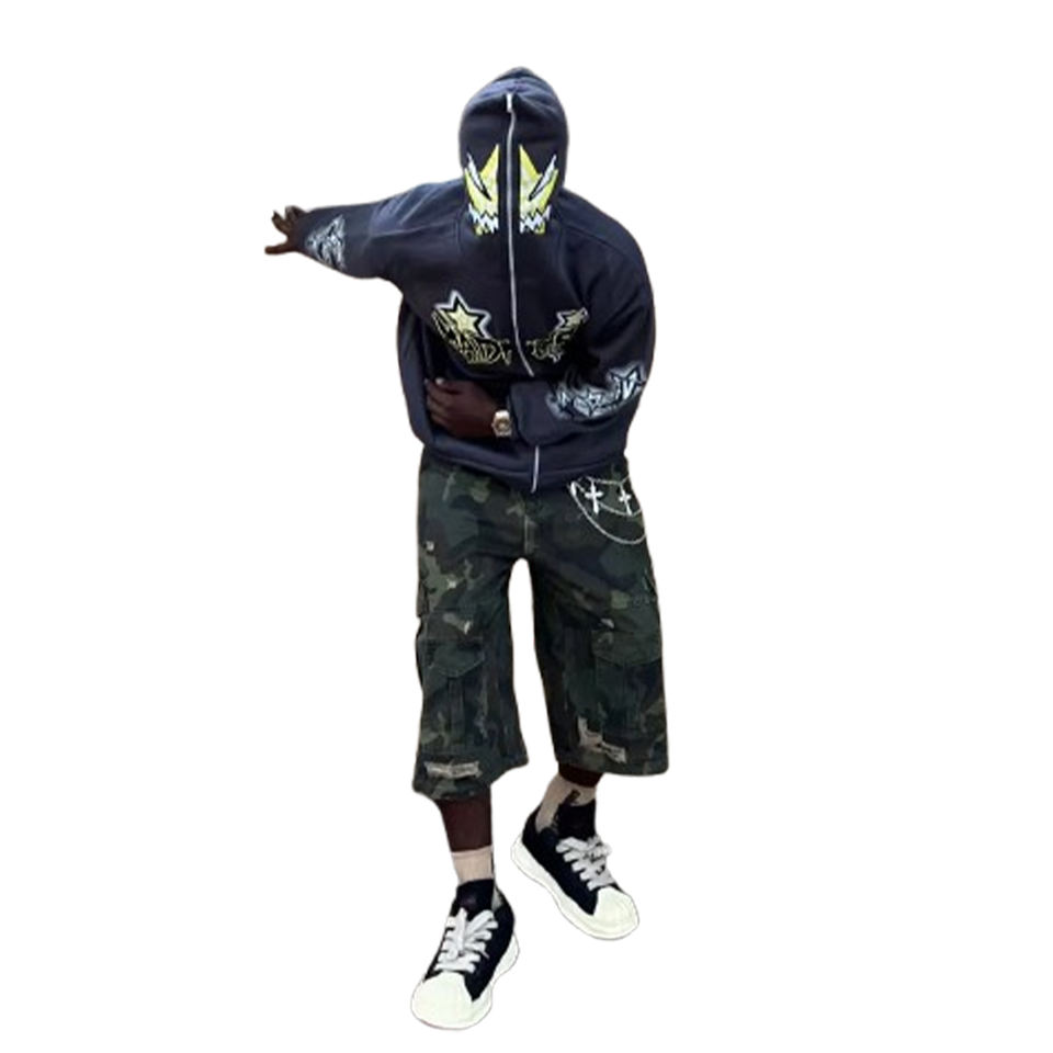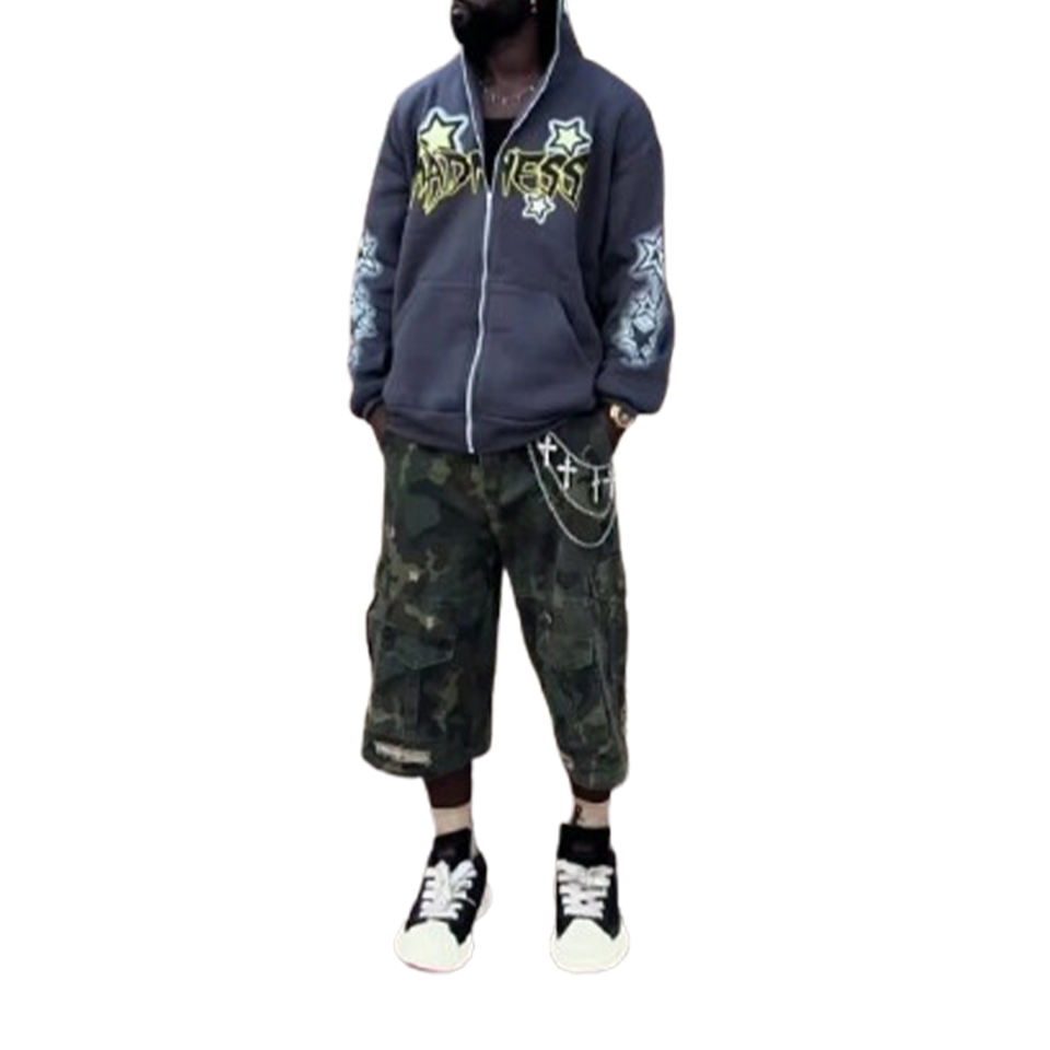 Style:Fashion, Vintage, Sporty, Hip Hop, Oversized, STREETWEAR, Unisex, HIGH STREET, Pullover, zipper-up
