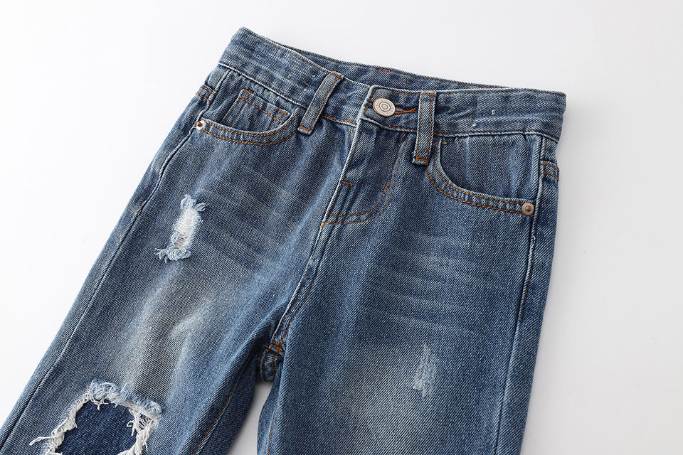 Fashion Baby Denim Pants Infant Kids Distressed Boutique European Design Neutral Spring Autumn New Girls Boys Cotton Jeans