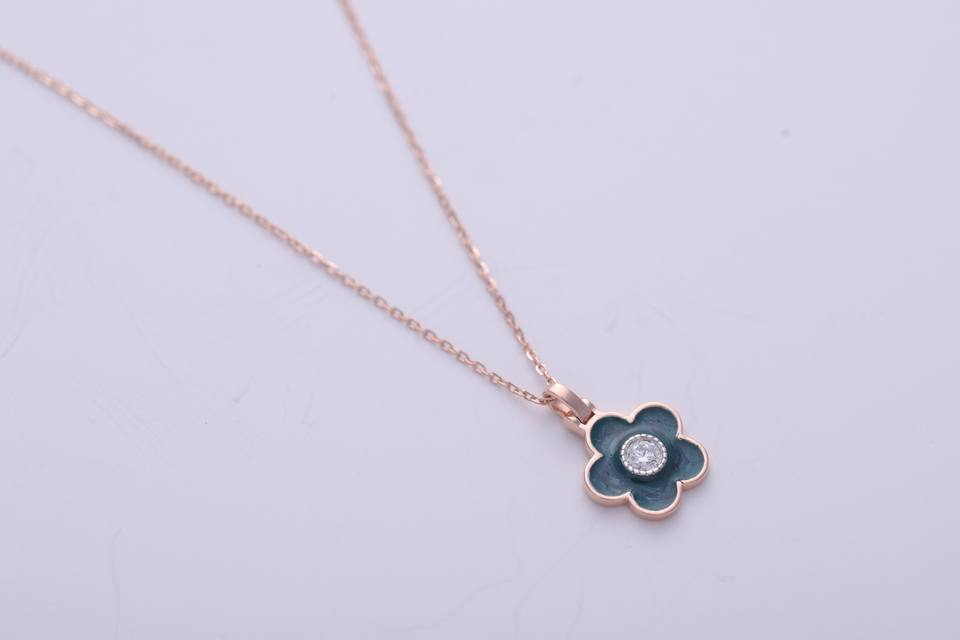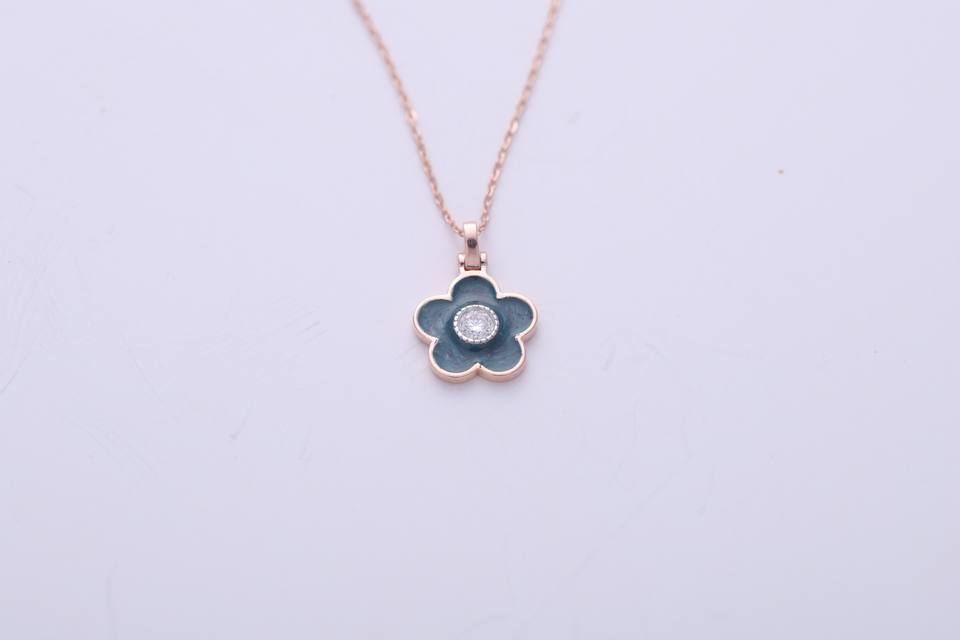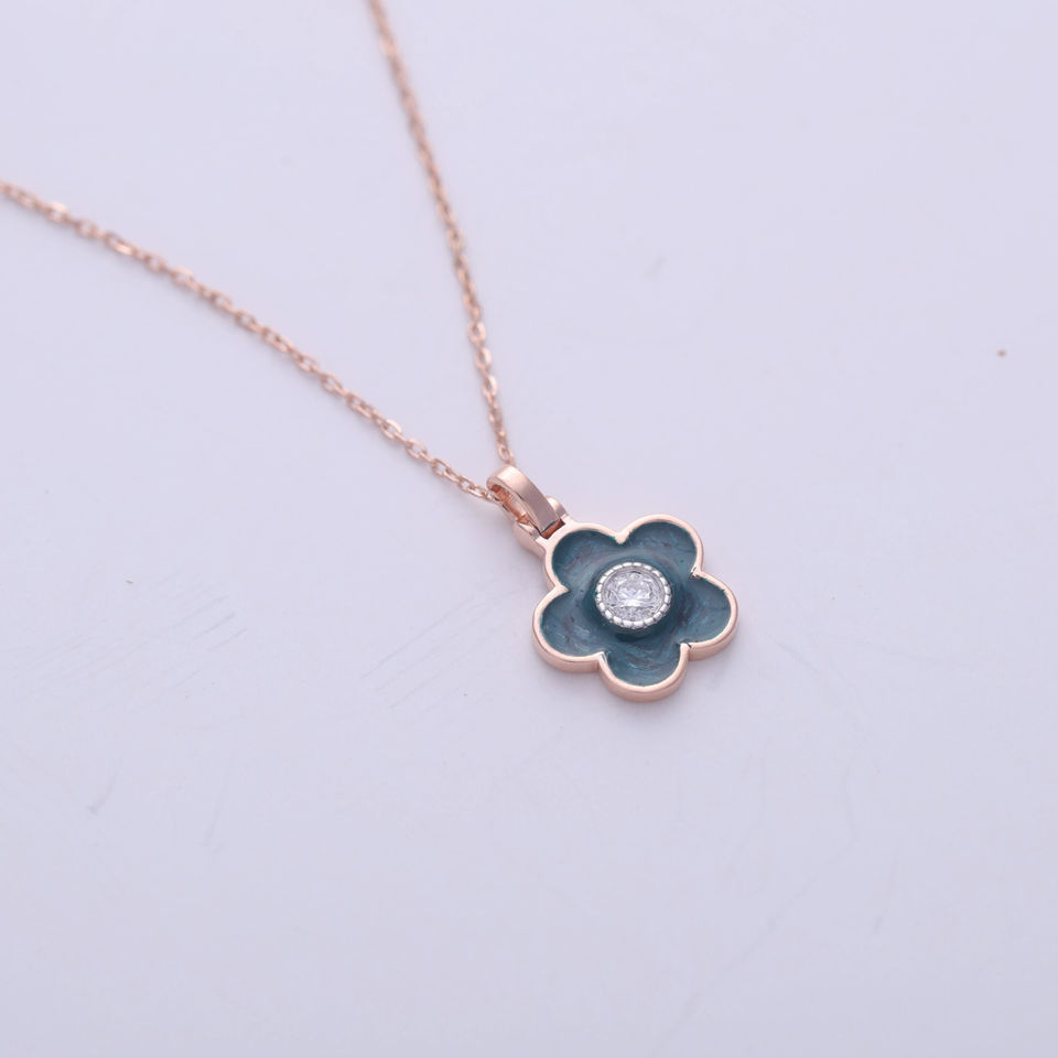 Fashion Blue Enamel Floral Diamond Pendant Charm Women Gift Jewelry 14K Yellow / White / Rose Gold