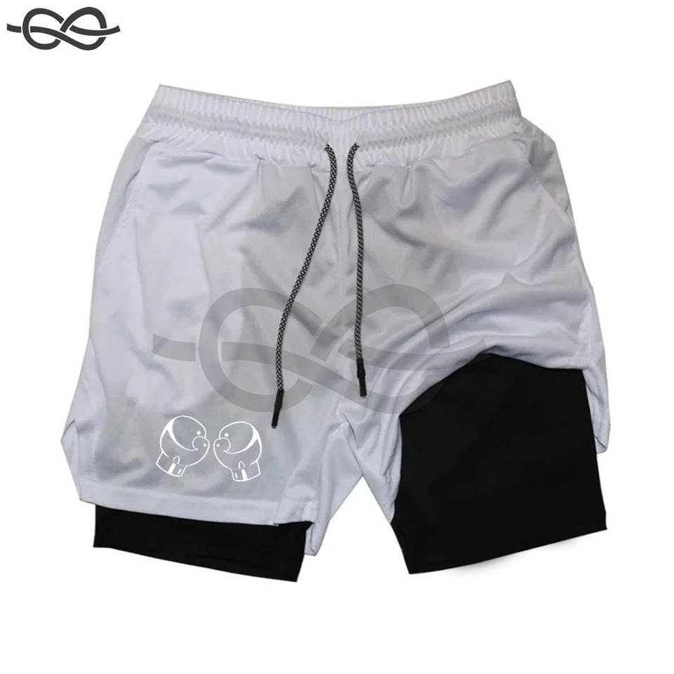 Fashion Boxing Shorts Gym Sports Boxers Trunks Double-Deck 2 in 1 Quick Dry Training Gym Comfort Fitness Summer Running Shorts