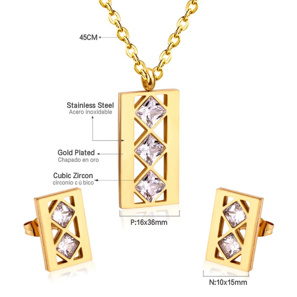 Fashion Bridal Gold Color Wedding Jewelry Set Stainless Steel Women Jewelry Set with Zircon