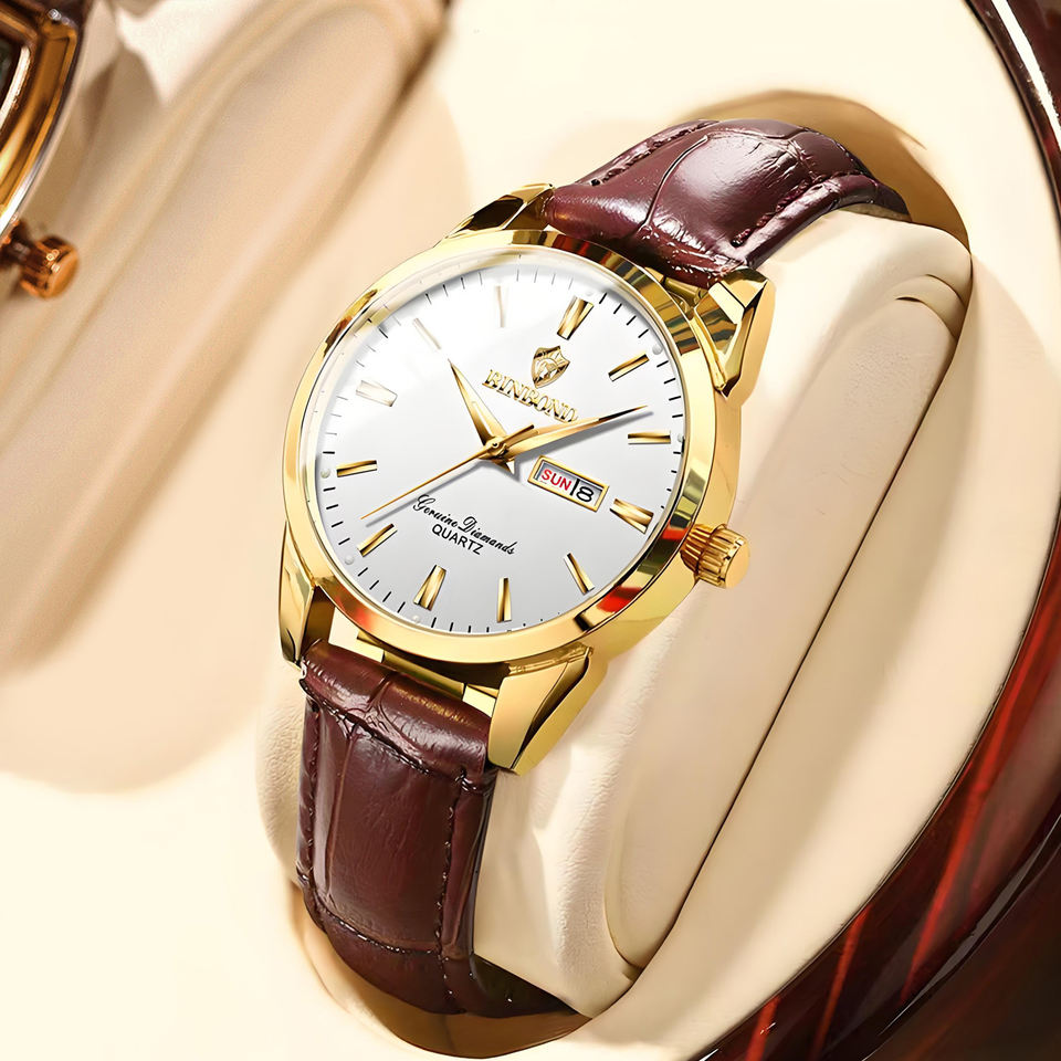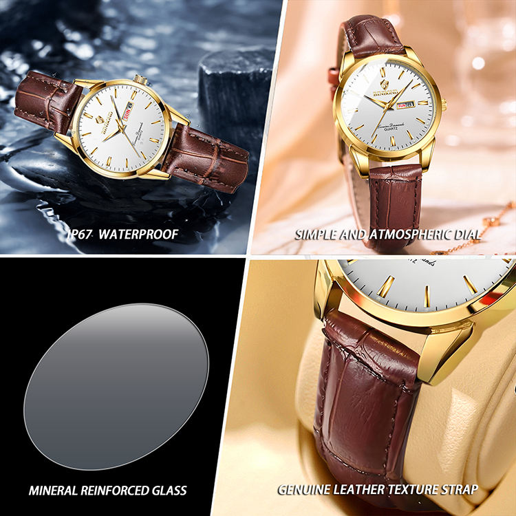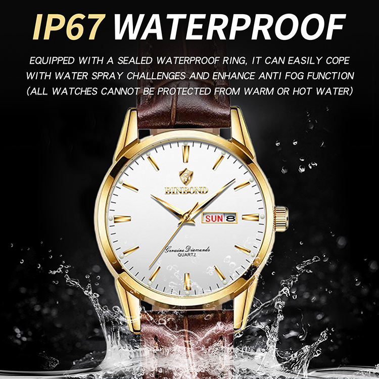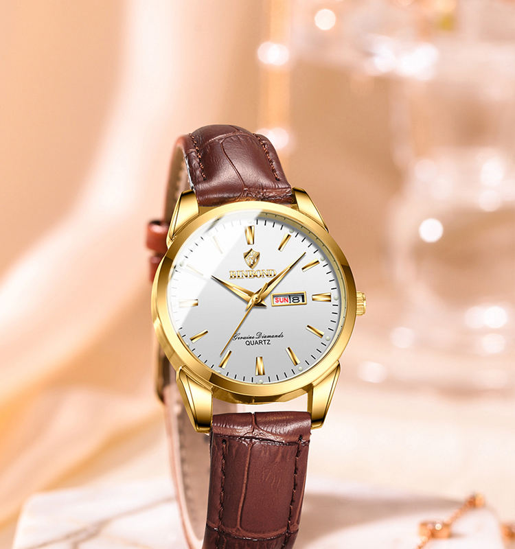 Fashion Business Binbond 2238 Women's and Men's Quartz Watch Double Calendar Waterproof Leather Strap Couple Wrist Watch