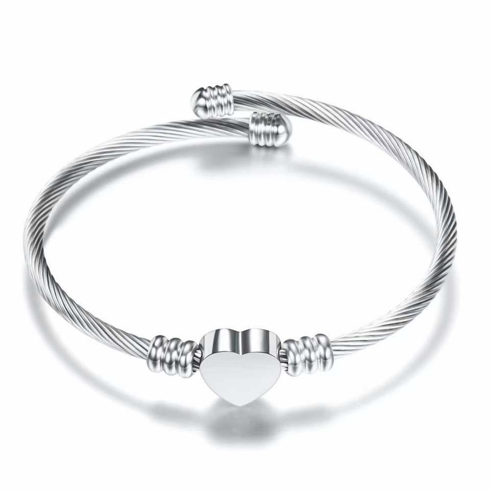 Fashion Charms Bracelets for Women Rose Gold Color Stainless Steel Heart Bracelet Bangle