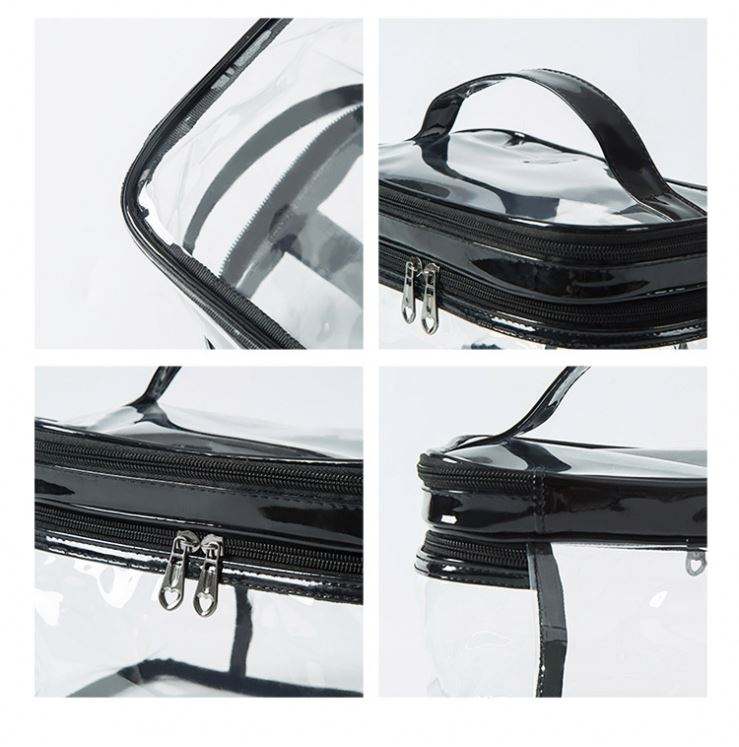 Fashion Clear Cosmetic Cases with 2 Compartments Travel Waterproof Transparent Frosted PVC Makeup Bag 2 Layer clear Toiletry Bag