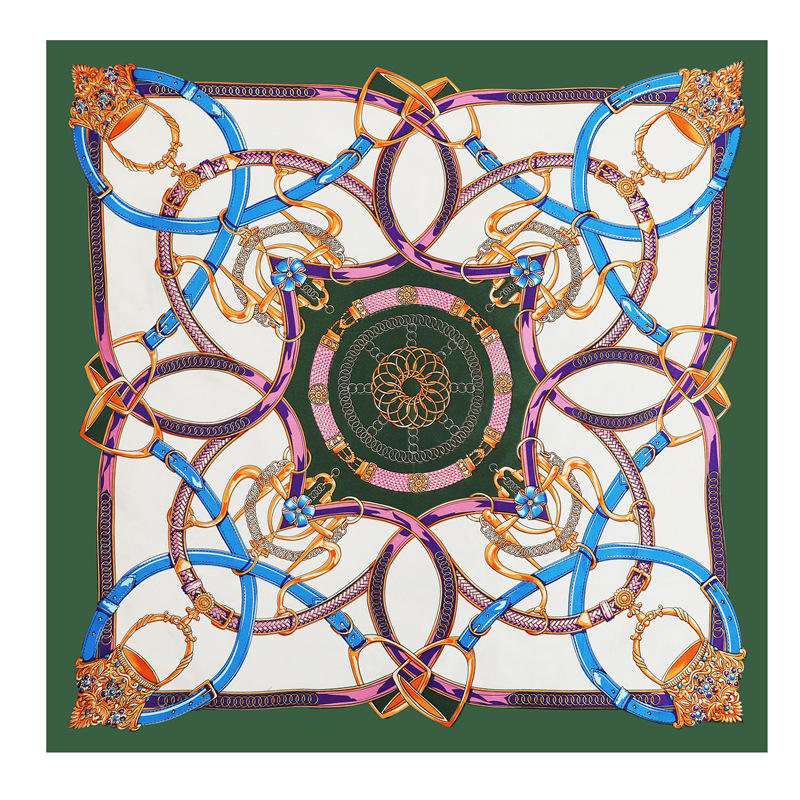 Fashion Colored Chain Printing 90 cm square Bag Handle Scarf Satin Tie Custom Design logo Women Silk Scarf