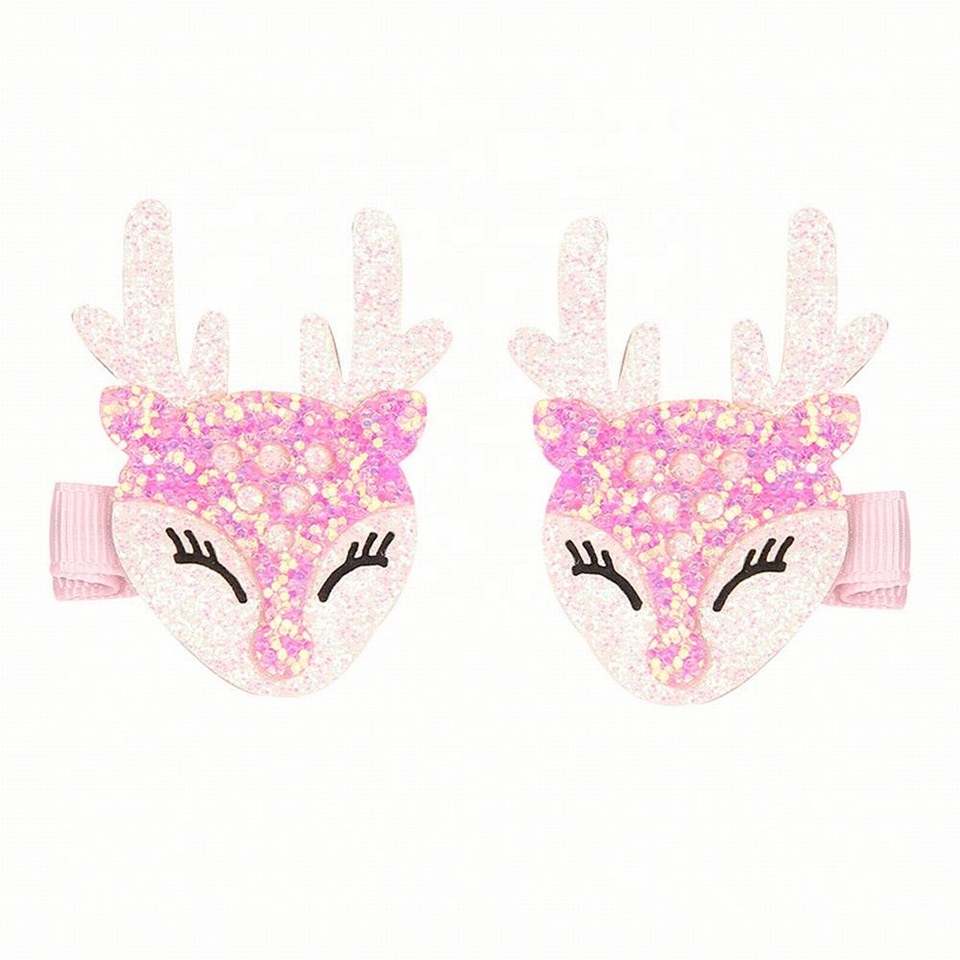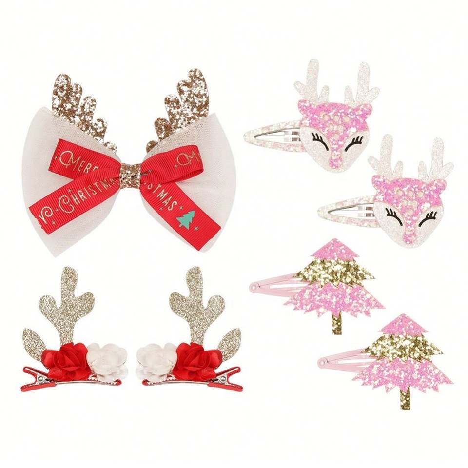 Fashion Colorful Bowknot Hairpin Children Kids Girls Christmas Hair Bow Glitter Antler Clip Accessories for Gift