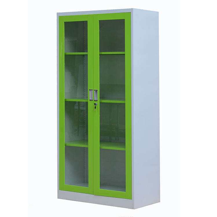 Fashion Colorful Sliding Swing Glass 2-Door Modern Office School Hospital Steel Storage Furniture Key Lock Metal Filing Workshop
