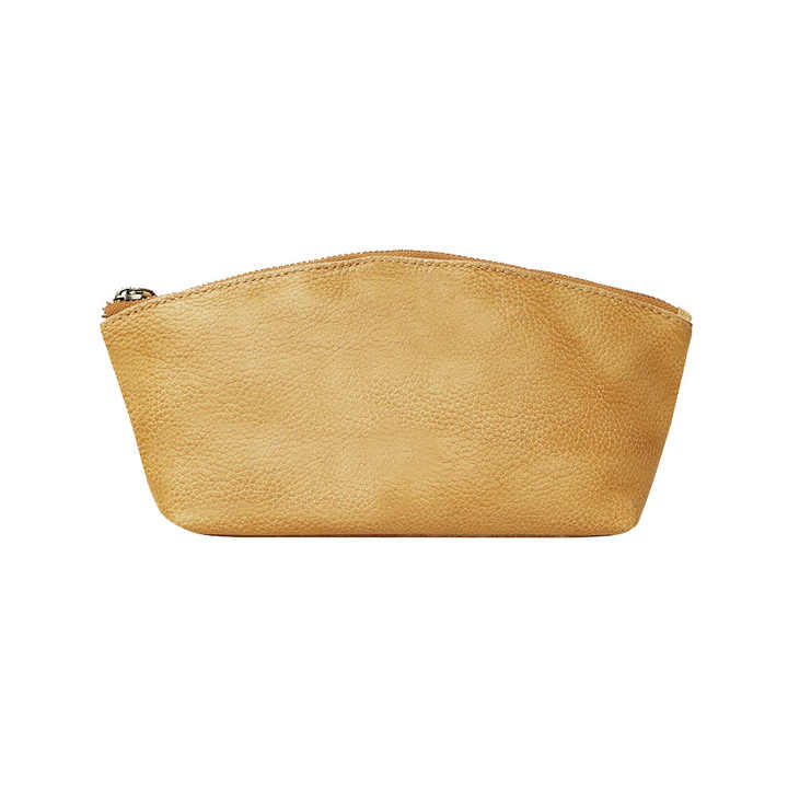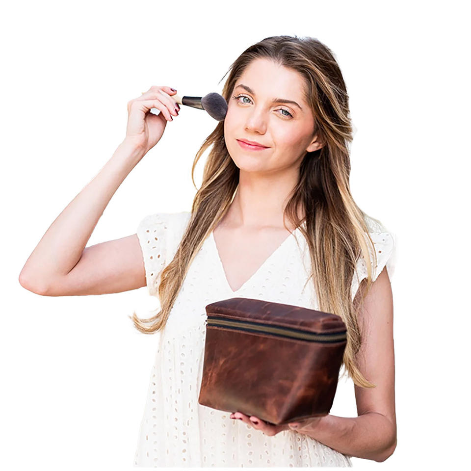 Fashion Cosmetic Case with Zipper Closure Conveniently Foldable Genuine Leather Makeup Bag Large Capacity
