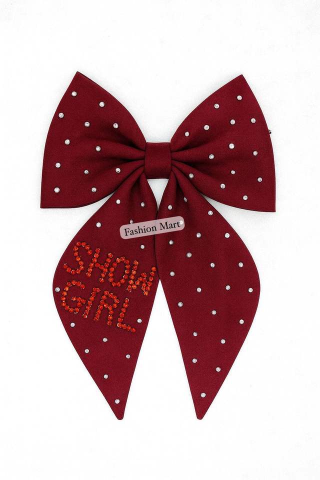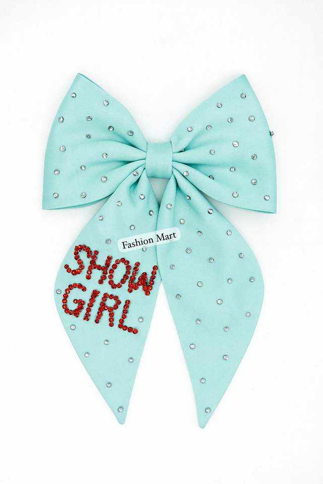 Fashion Crystal Studded Big Hair Bow Handmade SHOW GIRL Design for Cheer Dance or Event Wear