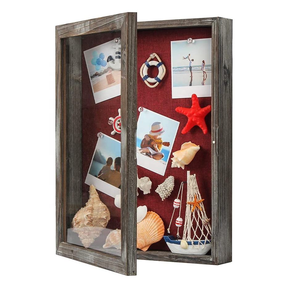 Fashion Custom 13x17 Rustic Gray Wood Linen Back Gifts Keepsakes Storage Memory Box Shadow Box Frame Display Case