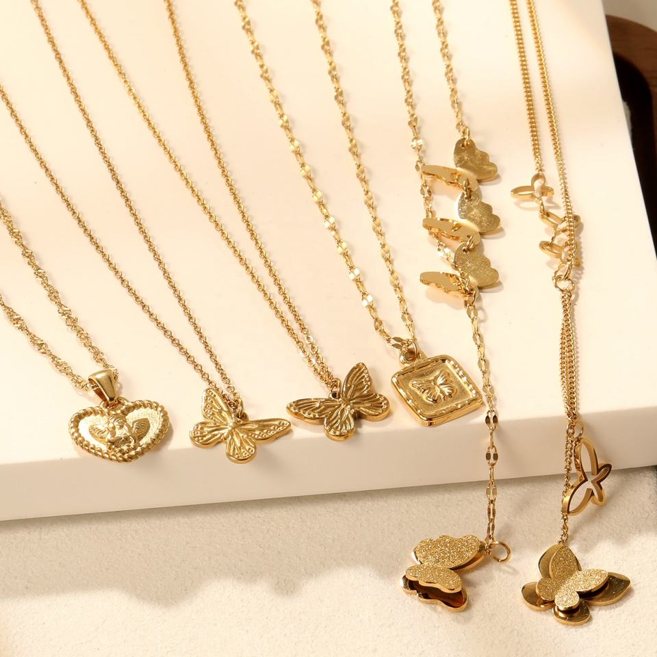 Fashion Custom Jewelry Wholesale Zircon Shell Multiple Cute Butterfly Charm Necklace 18k Gold Plated Pendant Necklace for Women