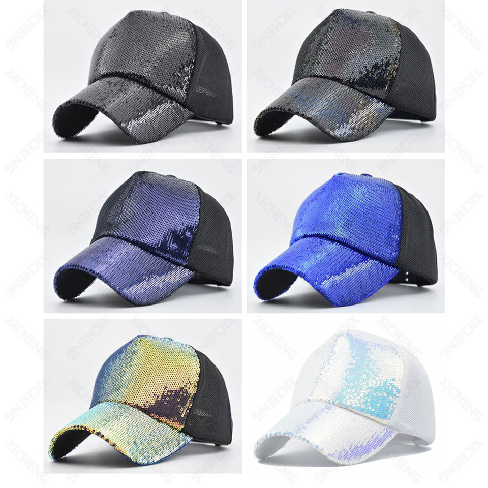 Fashion Custom Logo 5 Panel Baseball Cap Embroidered Sequins Snapback Cotton Mesh Tucker Hats for Women Men high quality